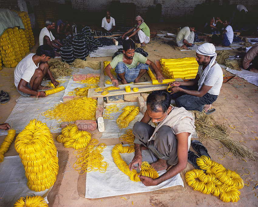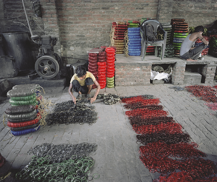 Cette série de 41 photographies Million Bangles, Firozabad a été réalisée au nord de l’Inde à Firozabad, ville dont la quasi totalité des habitants sont monopolisés pour travailler dans les innombrables verreries et pour la production de bracelets de verre en quantité phénoménale.