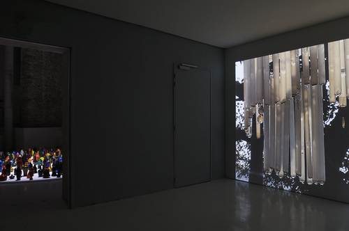 La fusion d’une production dans une autre, ou plutôt d’une matière dans le cerne d’une autre, la dilapidation de l’énergie dont elle est issue, a quelque chose d’extrêmement violent. D’autant plus violent que les soixante-quatre minutes de film s’évertuent à décliner les étapes, les gestes méticuleux et les nombreuses heures de travail qu’une tora nécessite. C’est dans cette violence que réside la dimension politique du projet. Déjà dans sa vidéo Firozabad, lorsqu’il filme les ouvriers accroupis devant les « meules de la nécessité », leurs outils rudimentaires, ramassant le verre à la main, ou inhalant les fumées de semelles plastiques qu’ils récupèrent et brûlent, François Daireaux montre les conditions de travail pénibles, le décalage entre les conditions de vie d’un ouvrier et le public à destination duquel les objets sont minutieusement manufacturés, au sens premier du terme, « fabriqués à la main ». Mais c’est dans son prolongement sculptural, les 404 empreintes, que François Daireaux pousse encore plus loin sa réflexion politique. Point de message ici mais une mise en tension dans le processus même de création. Pour réaliser cette série, l’artiste est passé par les canaux habituels du commerce, devenant lui-même acteur de la mondialisation (sachant que plus de la moitié de la production verrière de Firozabad part à l’étranger) en achetant aux marchands firozabis autant de toras qu’il existe de nuances de Bangles, dont il remplit un container entier à destination de Meisenthal. Cet artisanat séculaire – local – dont il a sondé les procédés de fabrication des mois durant, devient un objet déterritorialisé, délocalisé en France. François Daireaux rejoue ici le processus d’échange, de migration et de mise en réseau, l’imbrication de l’économique et du culturel propre à la mondialisation. Mondialisation qui est à l’origine même du début de l’industrie verrière à Firozabad, importée par les envahisseurs successifs qui ont exporté en Inde de nombreux objets en verre, notamment recyclés par les firozabis pour la fabrication des bracelets. François Daireaux explore la contradiction ô combien d’actualité entre local et global. Mais ici, il met directement en tension – physique - du local avec du local, en filtrant le savoir-faire d’une ville par le moule d’une autre, pour entrevoir les effets du global : d’un côté le verre d’une industrie locale qui produit en quantité démesurée, prise dans la machine infernale du commerce mondial ; et de l’autre le verre d’une industrie tout aussi locale qui parvient à se maintenir, mais qui renvoie inévitablement à la crise industrielle nationale et aux rares usines verrières encore ouvertes en France qui redoublent d’efforts face à une concurrence mondiale, notamment venue d’Inde.