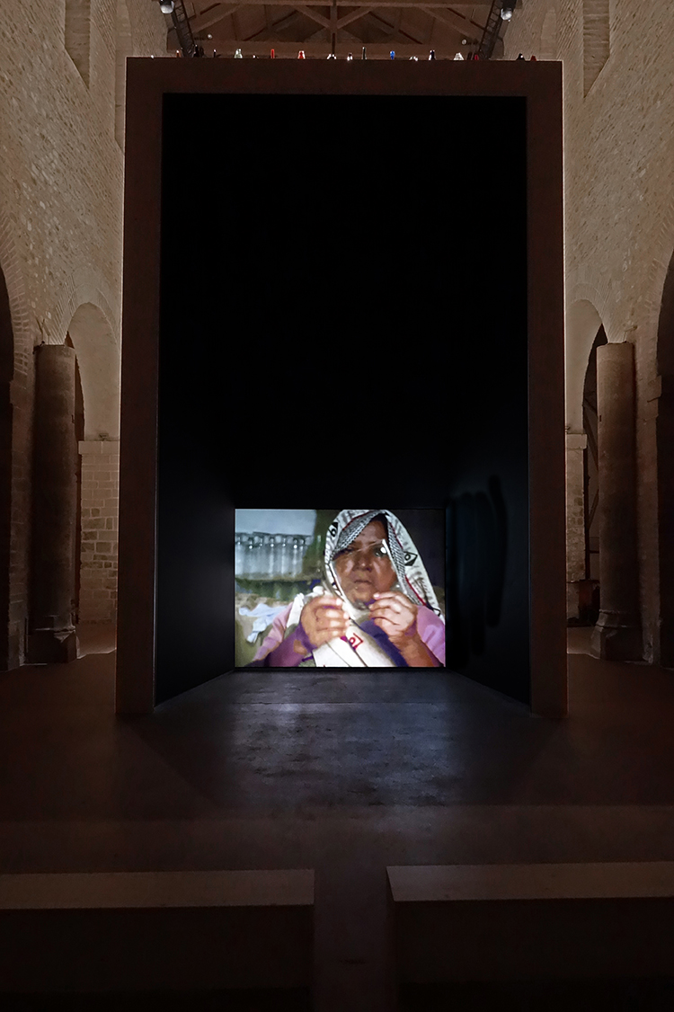 Film en projection à l’intérieur du socle, écran de projection : 300x400cm