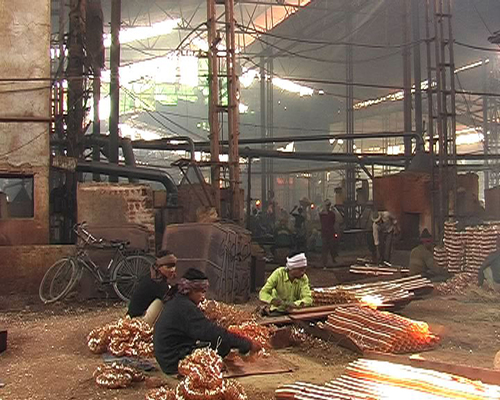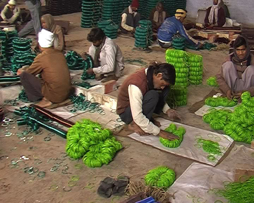 L’exposition BLOW BANGLES de Firozabad à Meisenthal de François Daireaux est le résultat de multiples allers-retours de l’artiste entre le territoire verrier de Firozabad en Inde et celui de Meisenthal en Moselle. Firozabad est une ville ouvrière située au nord de l’Inde dont l’activité principale est, depuis plusieurs siècles, la production verrière et en particulier la production de bracelets de verre, bangles dont se parent les femmes indiennes. Ceux-ci sont quotidiennement produits par millions dans les centaines de verreries disséminées dans toute la ville. La quasi totalité des 600’000 habitants de cette cité travaillent pour la production verrière à des cadences infernales dans des conditions souvent extrêmement pénibles.