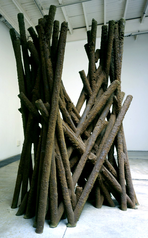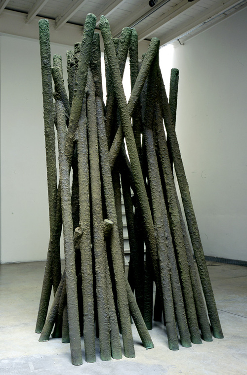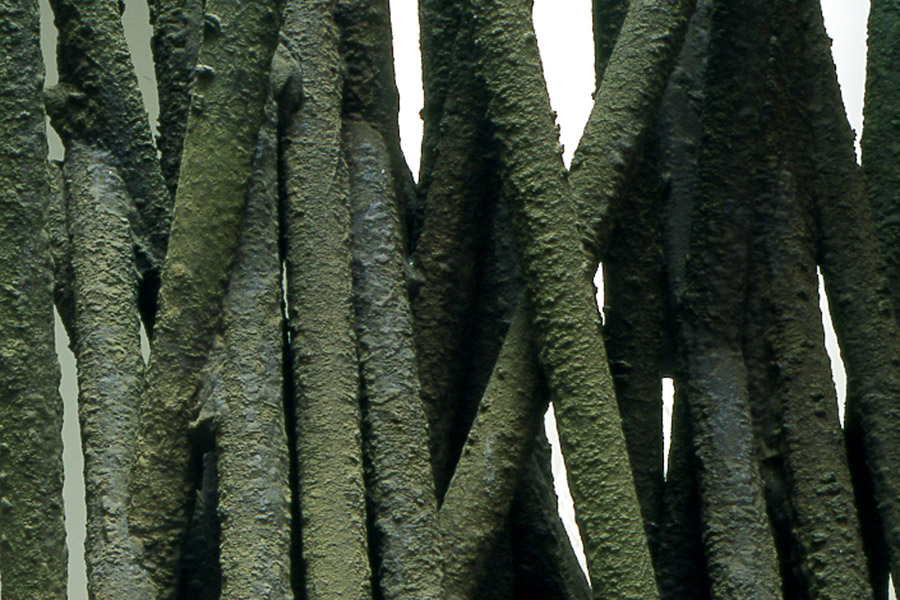 Ensemble de 5 sculptures, résine polyester, mousse florale, 187 x 80 x 110 cm chaque.