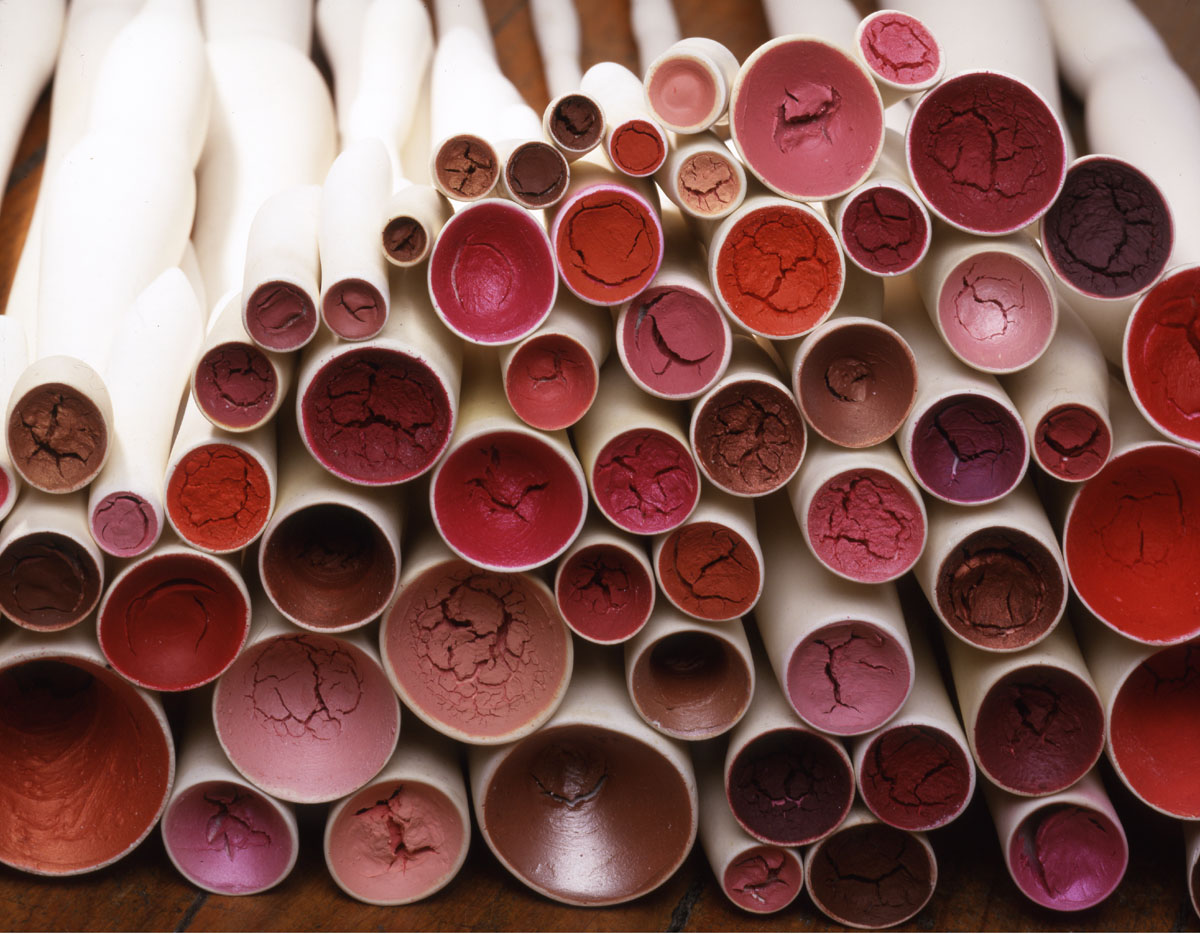 Plâtre, rouges à lèvres, 35 x 190 x 60 cm.