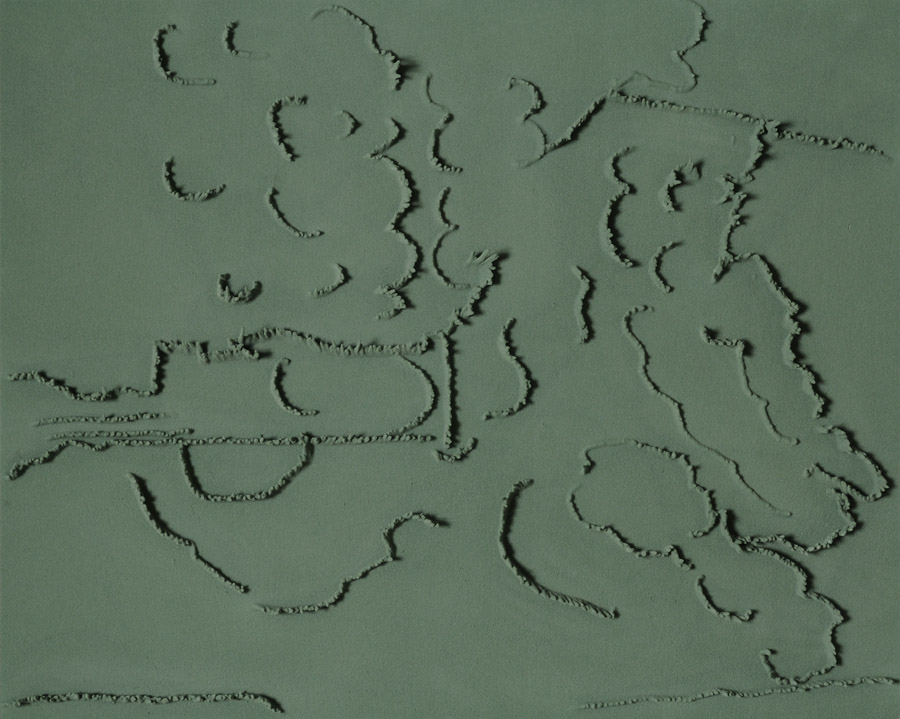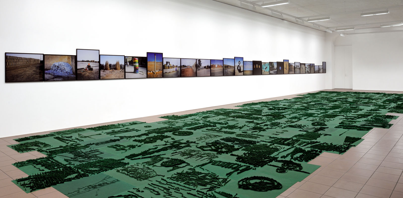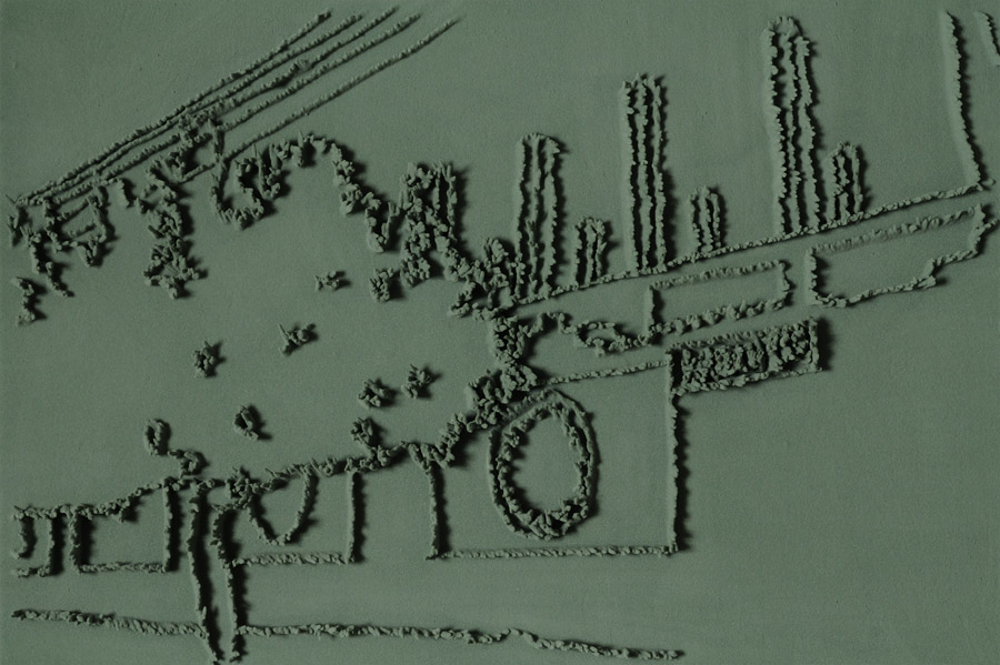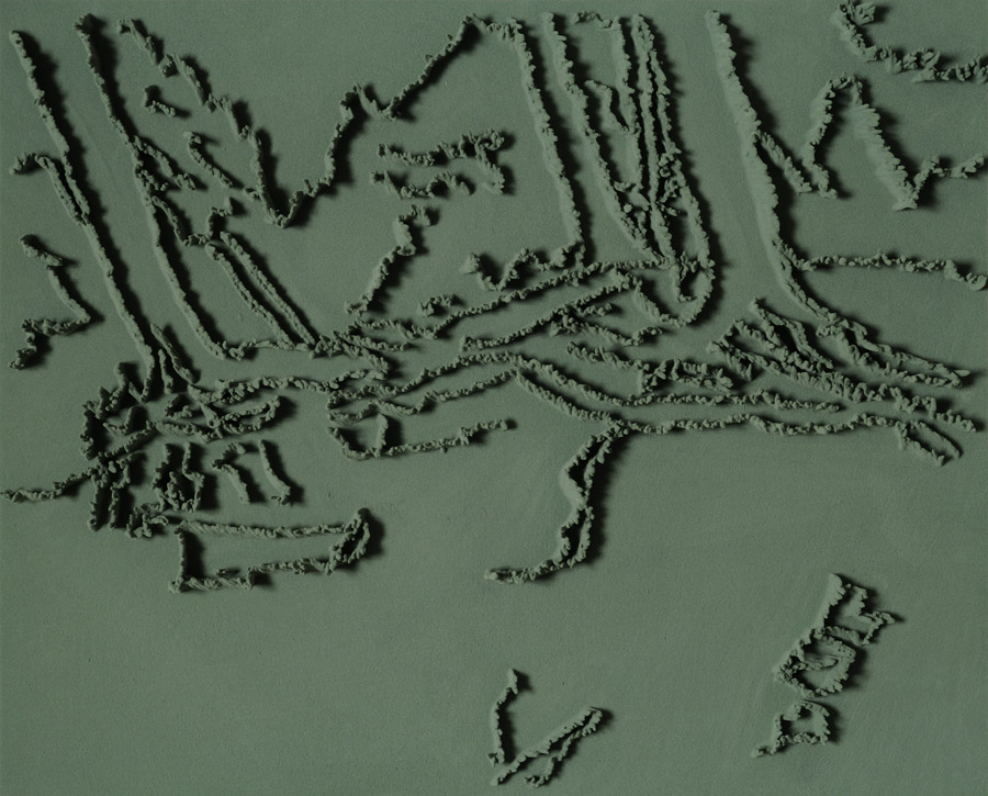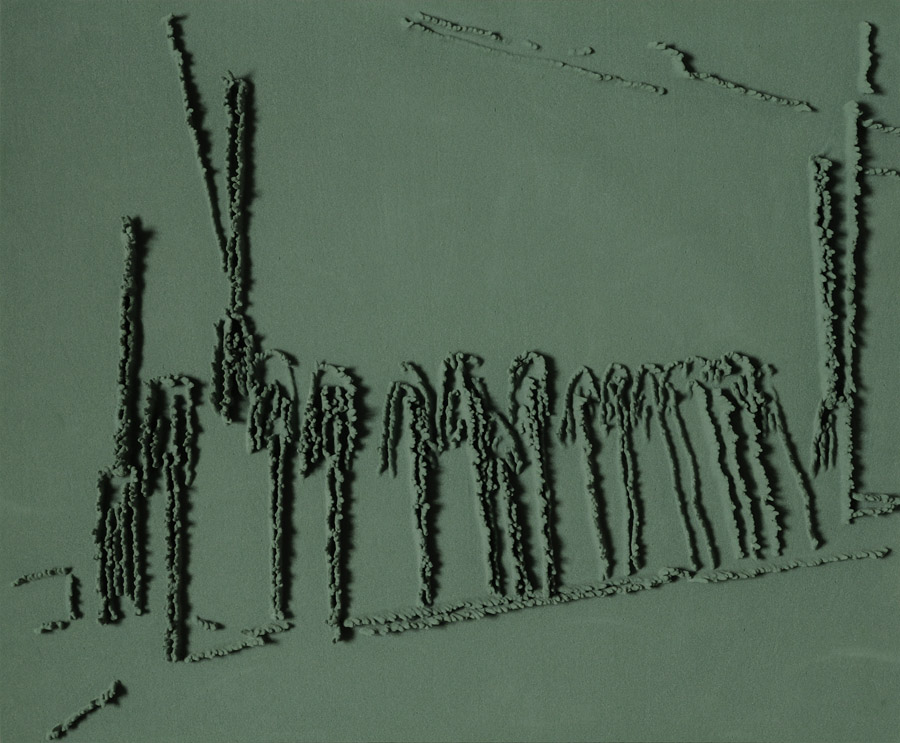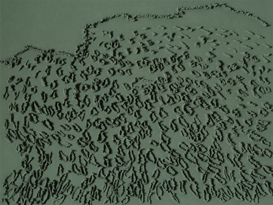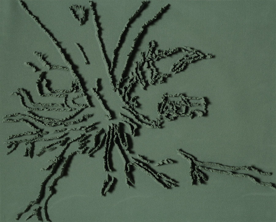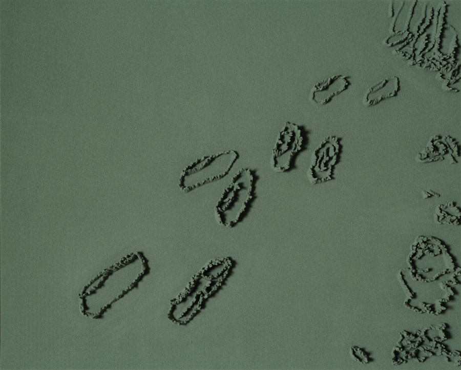Series of 203 “Skizzes”, juxtaposed on floor, silicone, Floral foam,