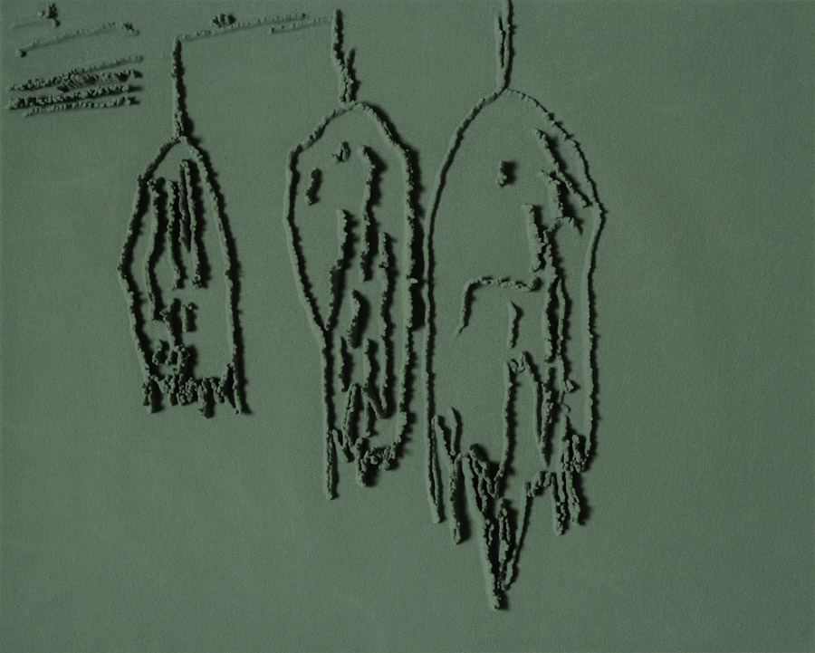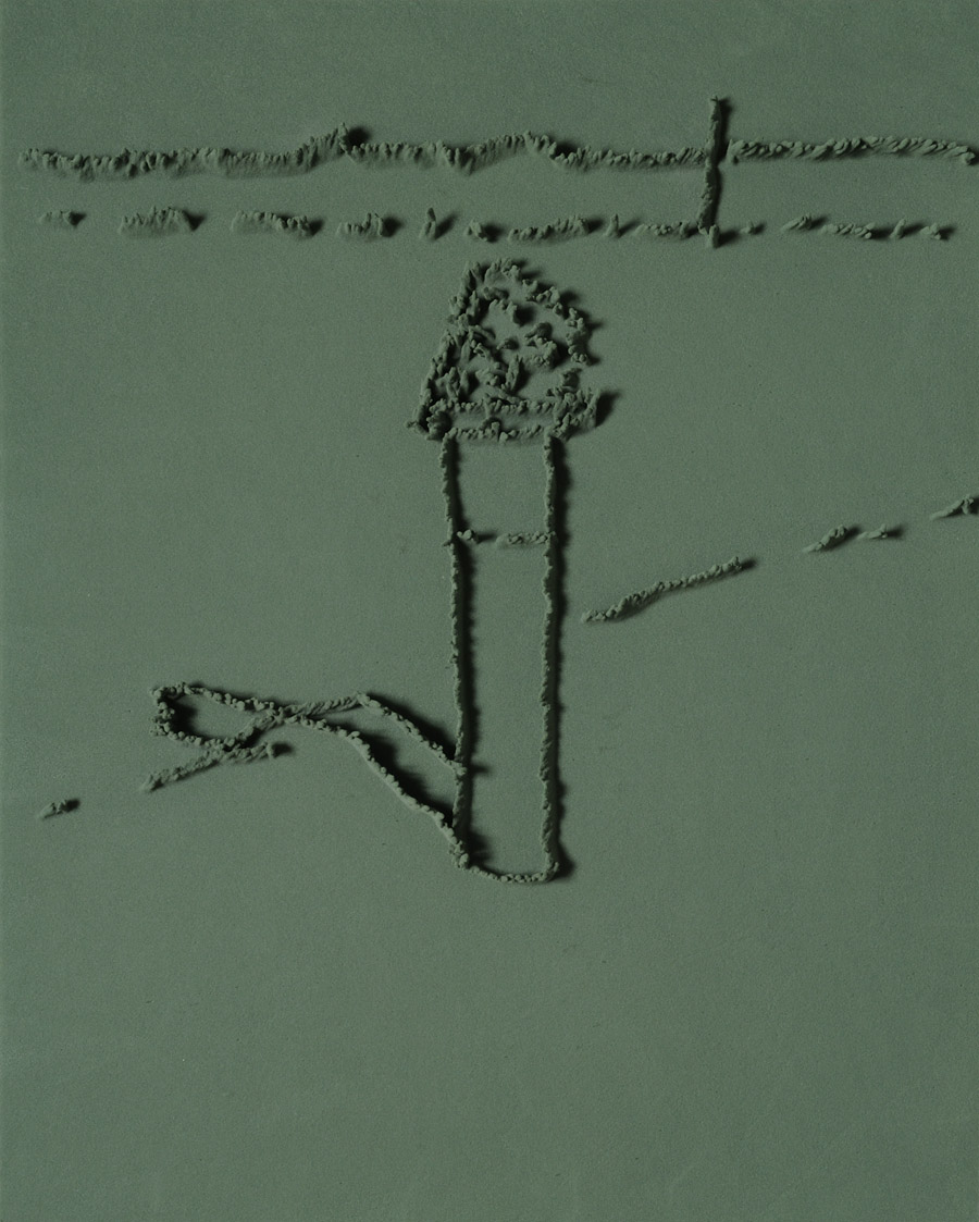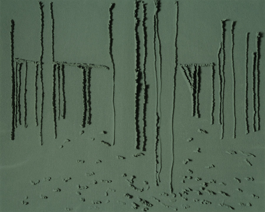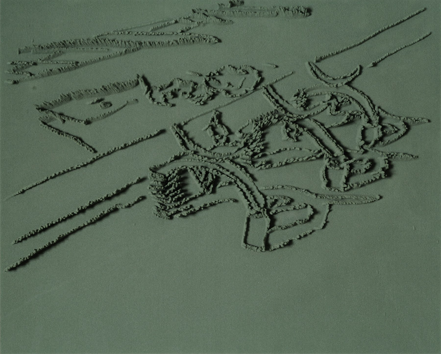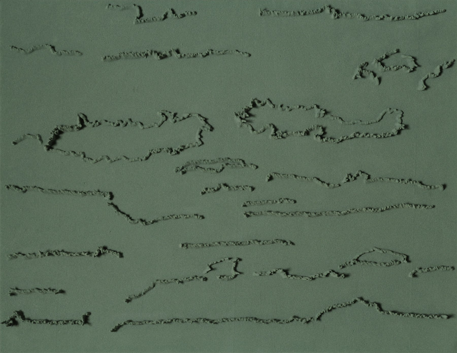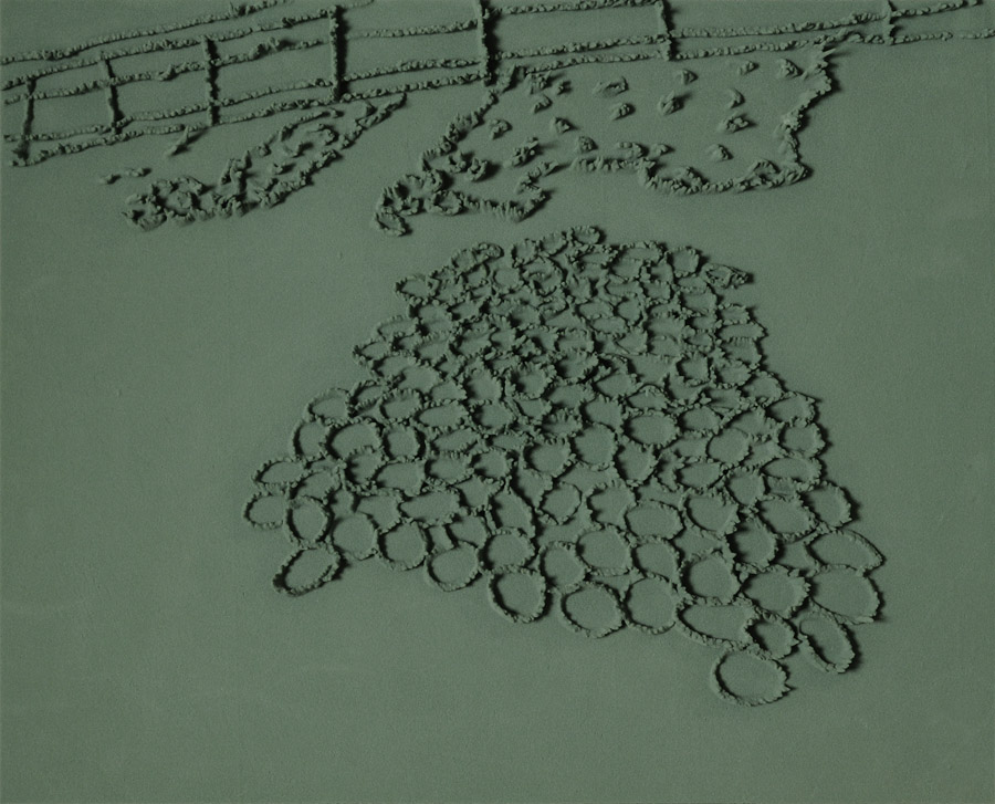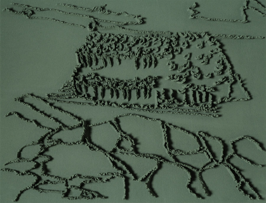 Series of 203 “Skizzes”, juxtaposed on floor, silicone, Floral foam,