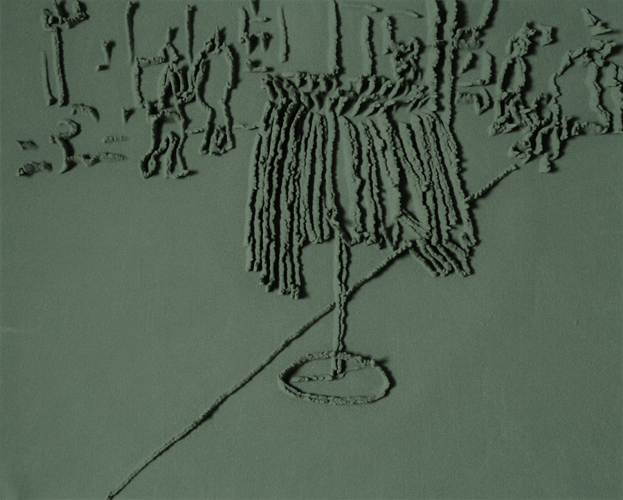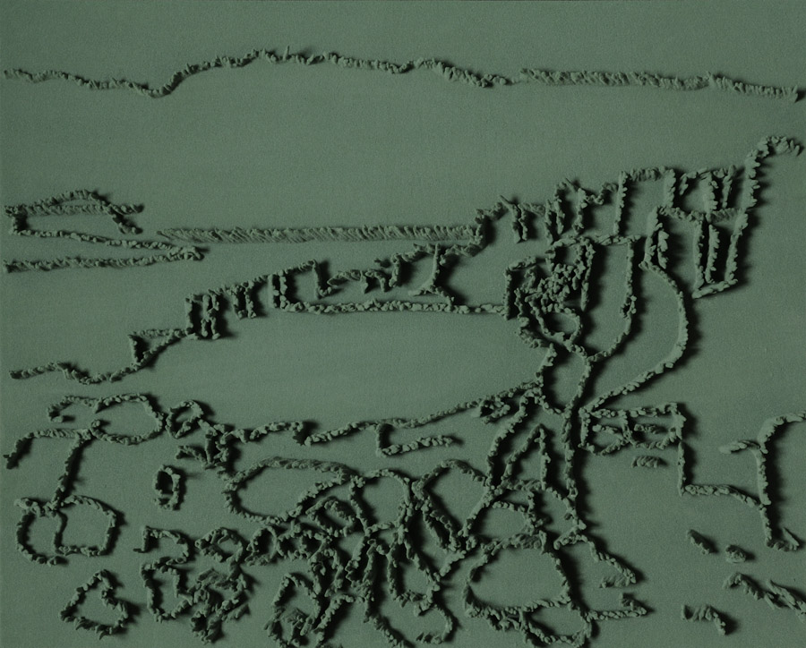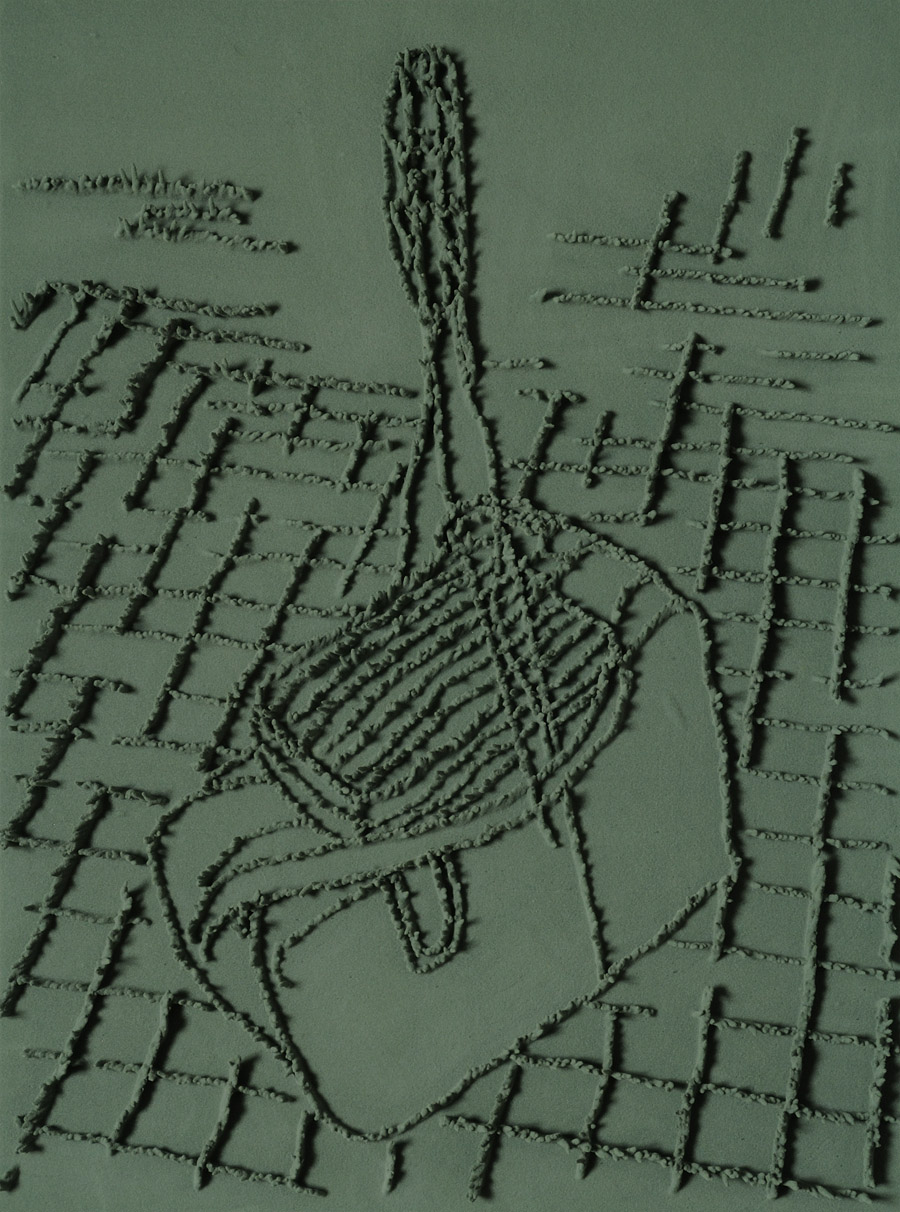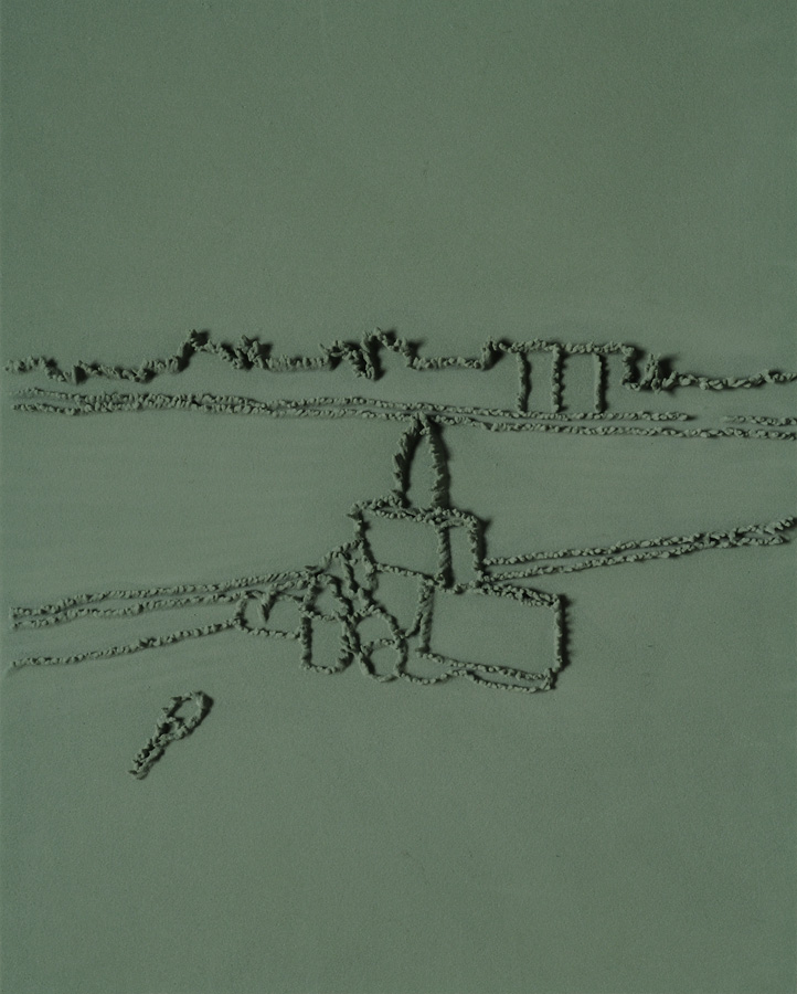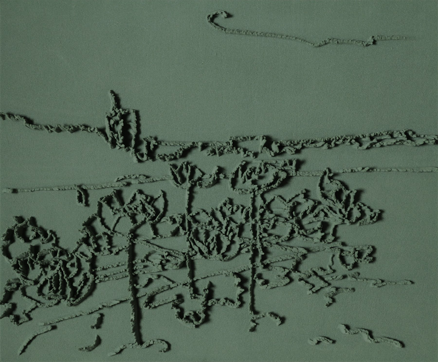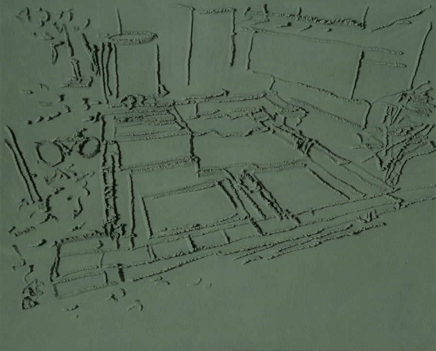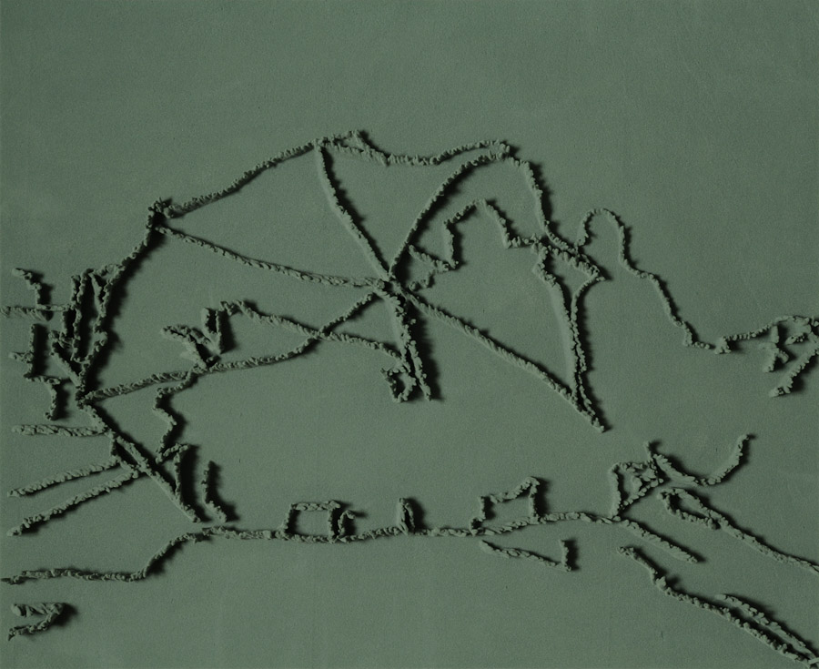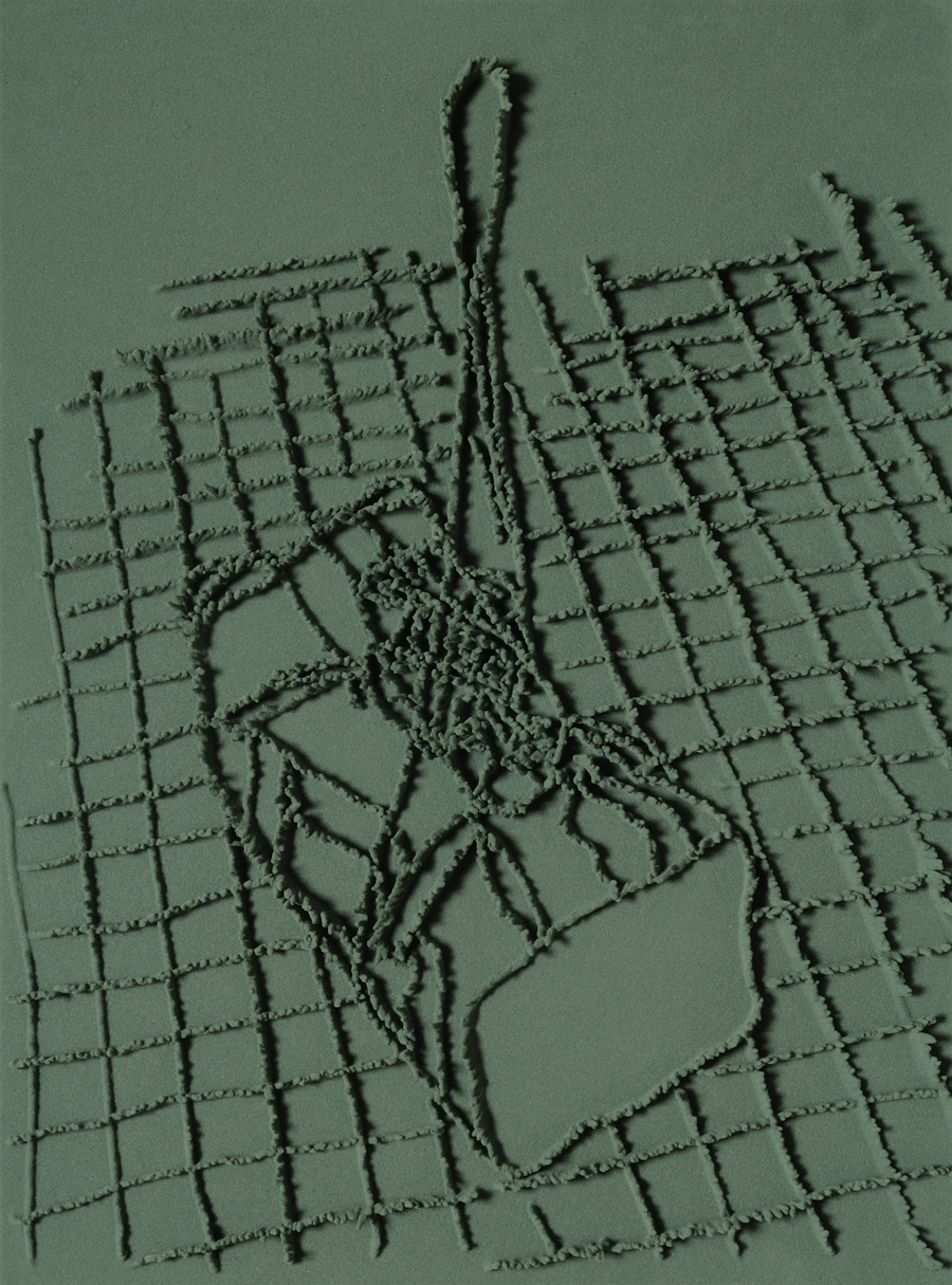 Series of 203 “Skizzes”, juxtaposed on floor, silicone, Floral foam,