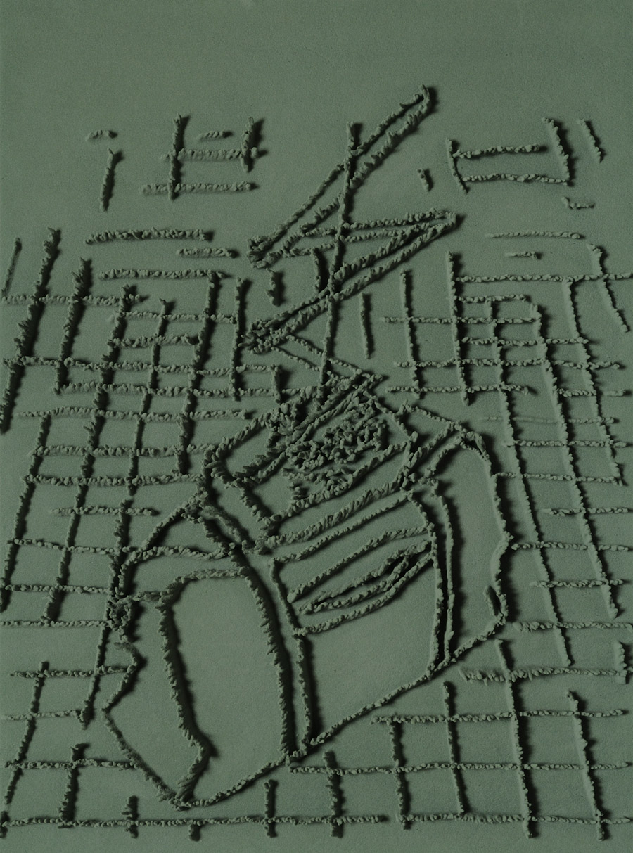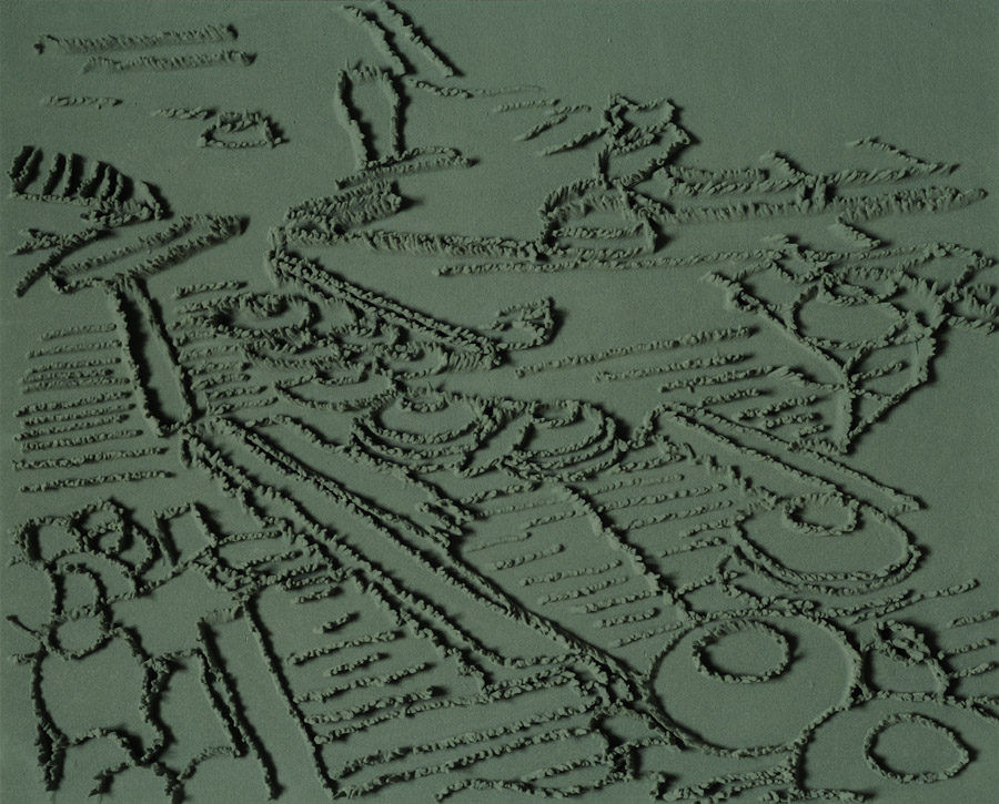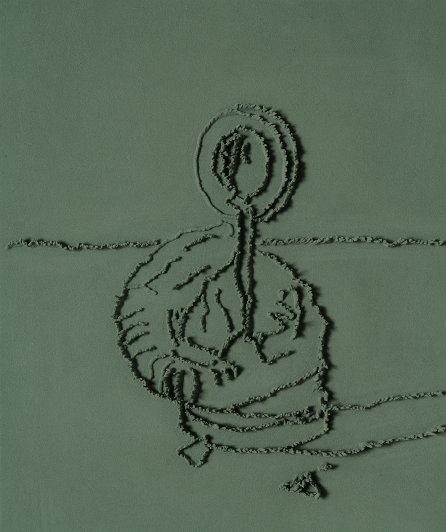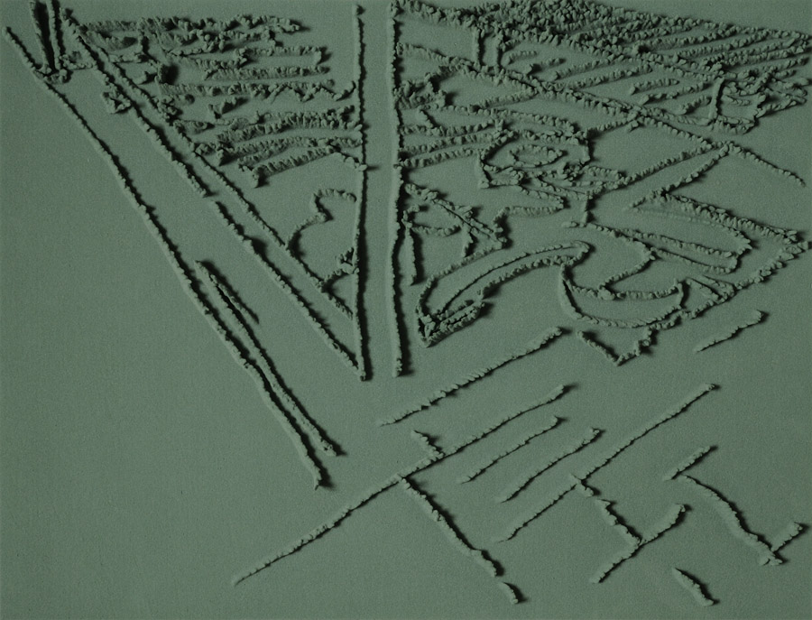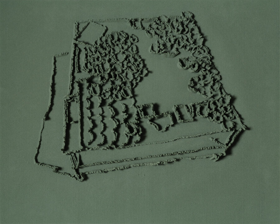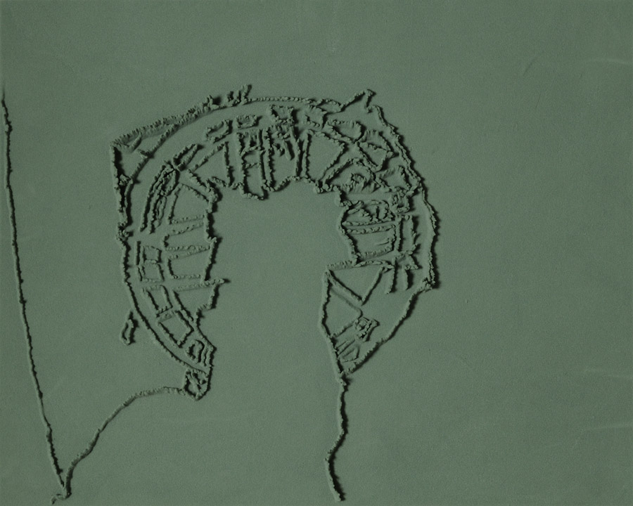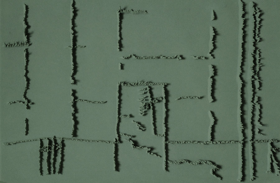Series of 203 “Skizzes”, juxtaposed on floor, silicone, Floral foam,
