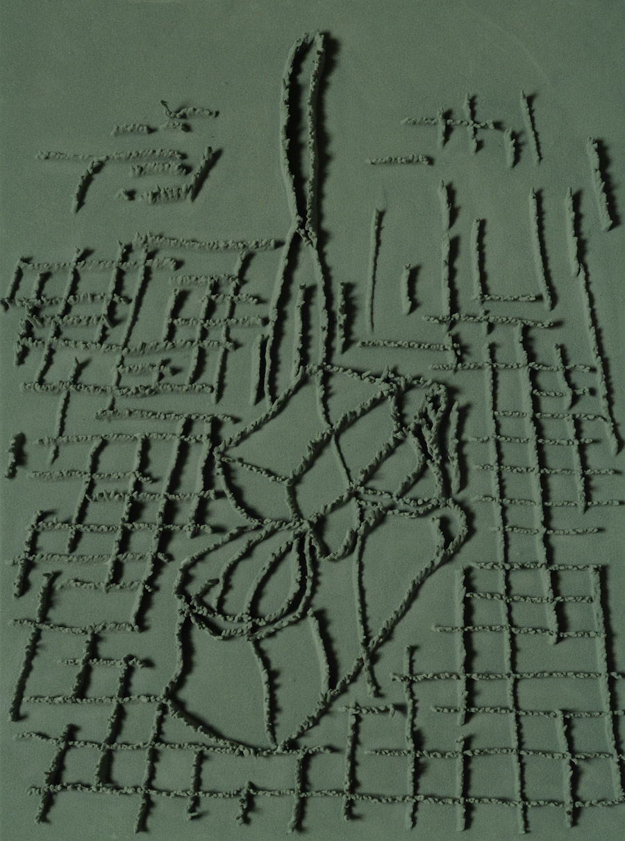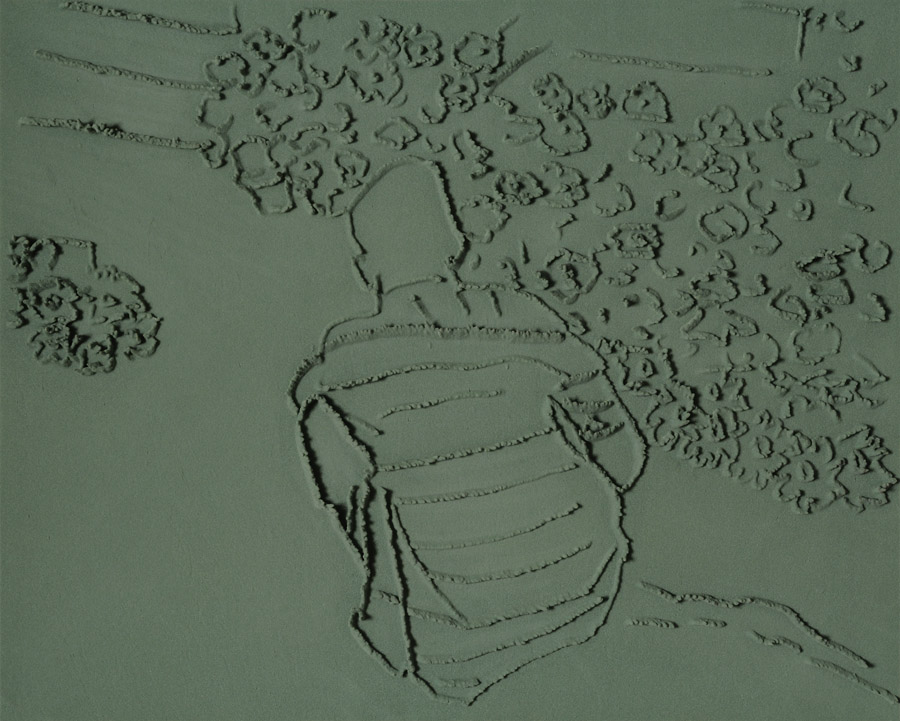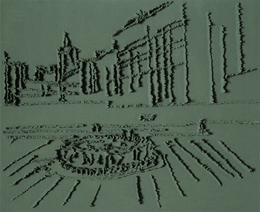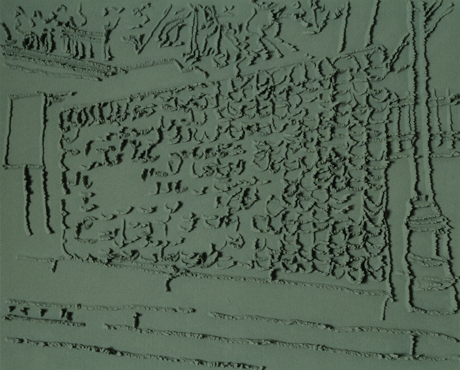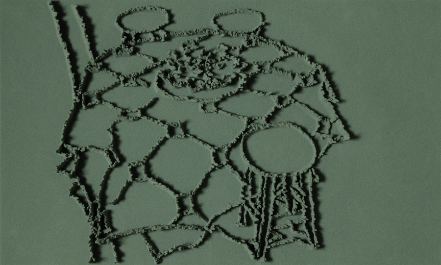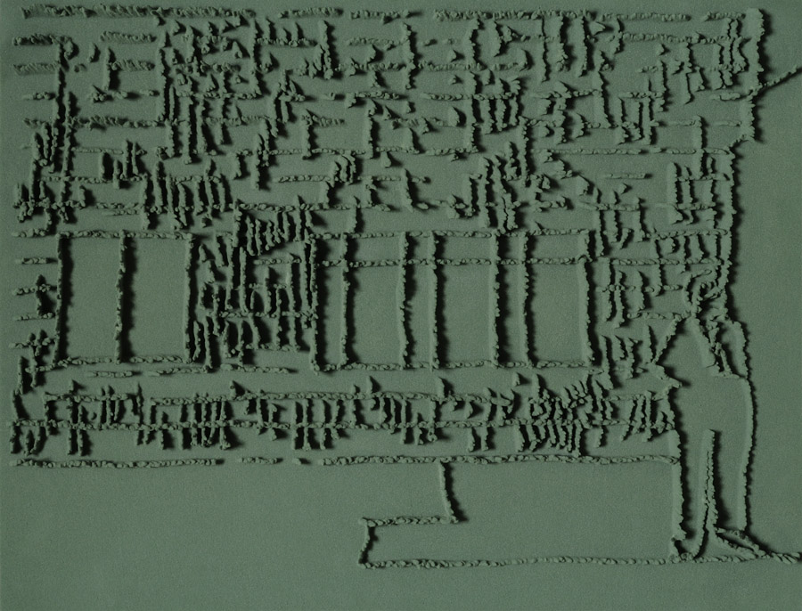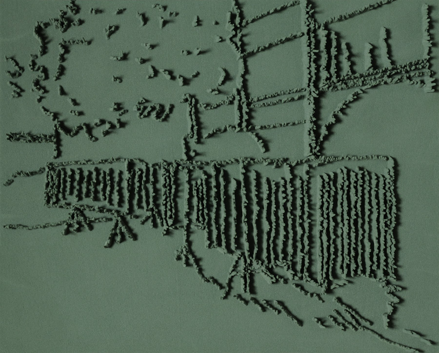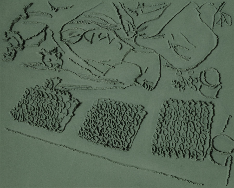 Series of 203 “Skizzes”, juxtaposed on floor, silicone, Floral foam,