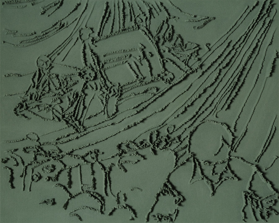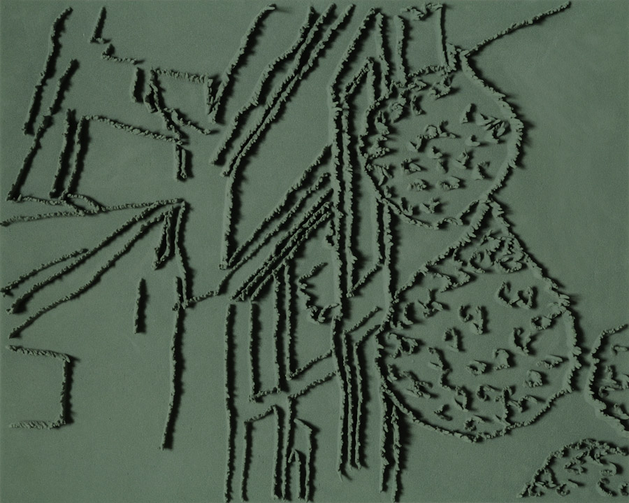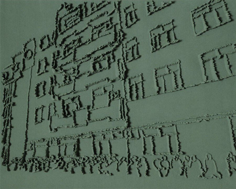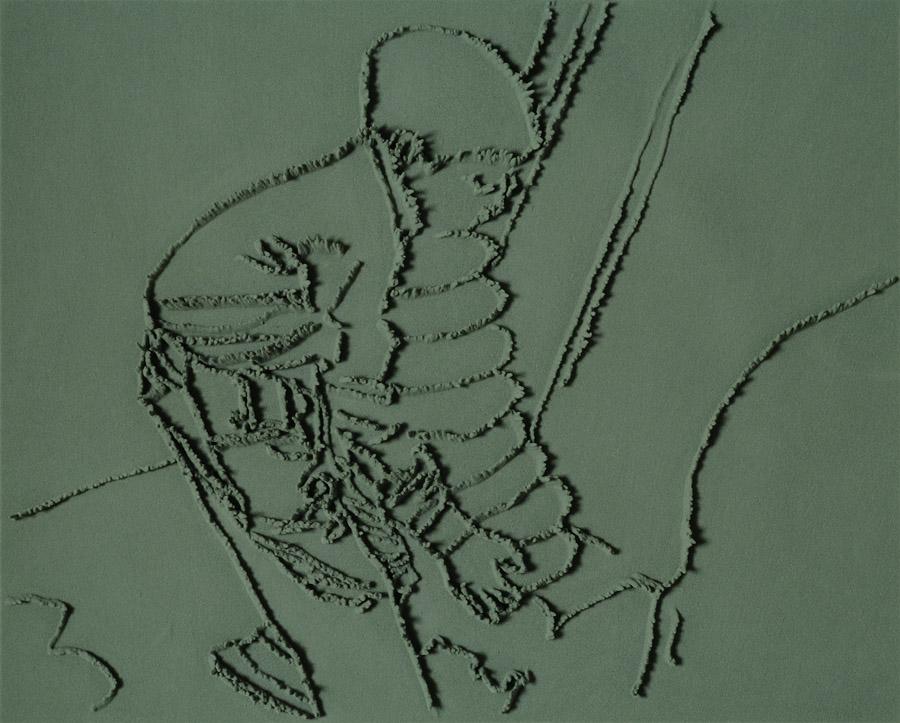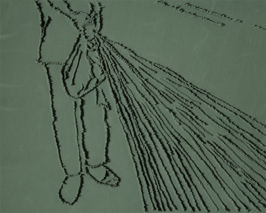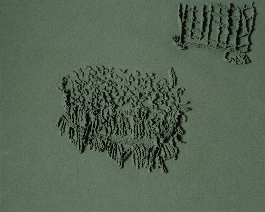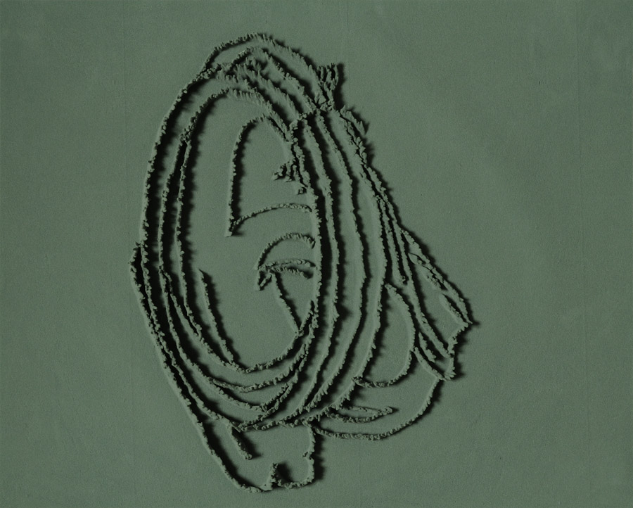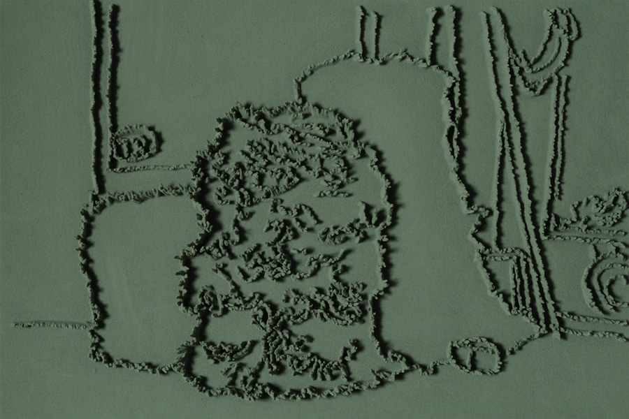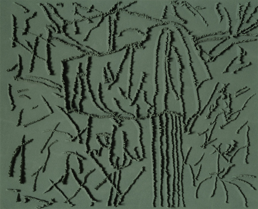 Series of 203 “Skizzes”, juxtaposed on floor, silicone, Floral foam,