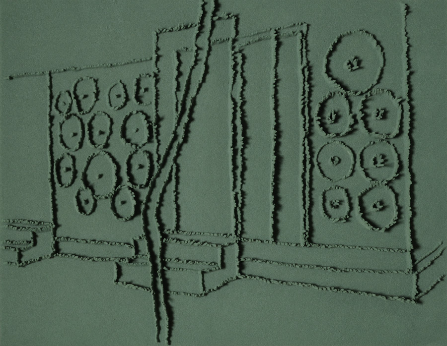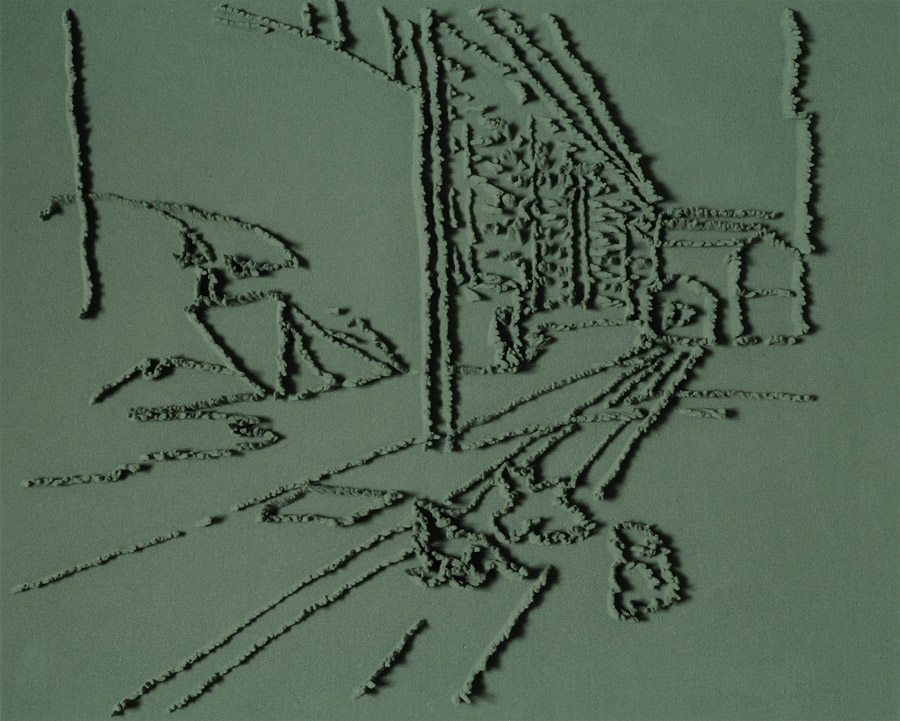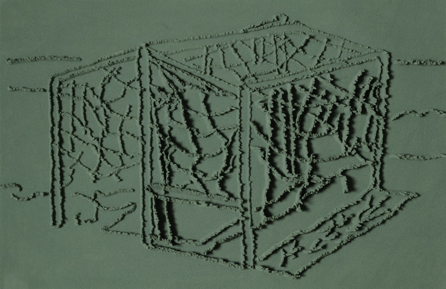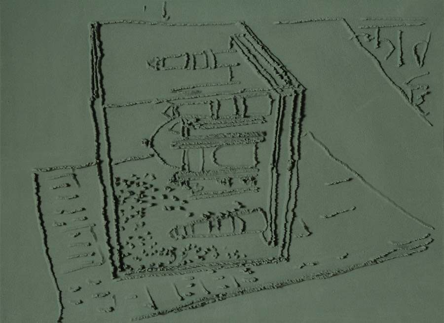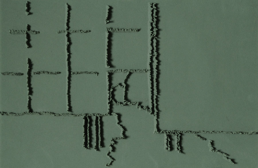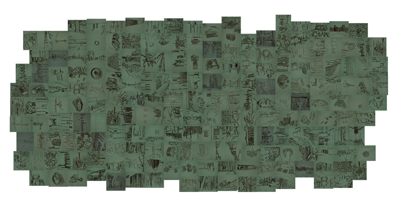 On floor: Skizzes, 2009. Series of 203 “Skizzes”,