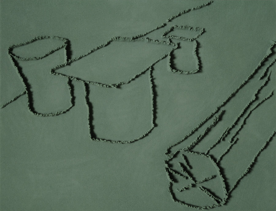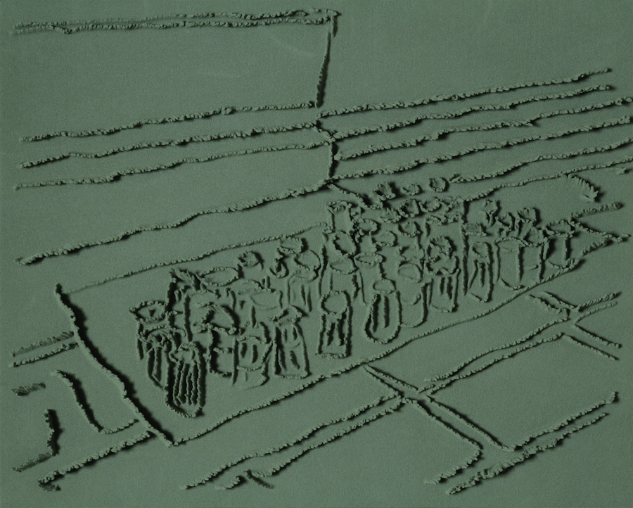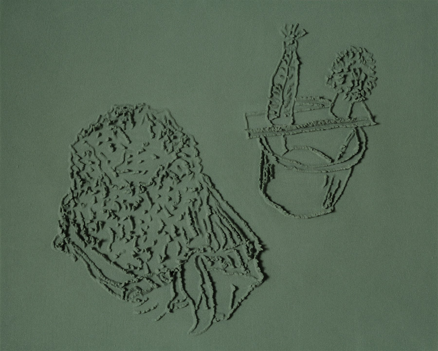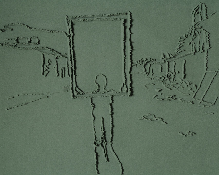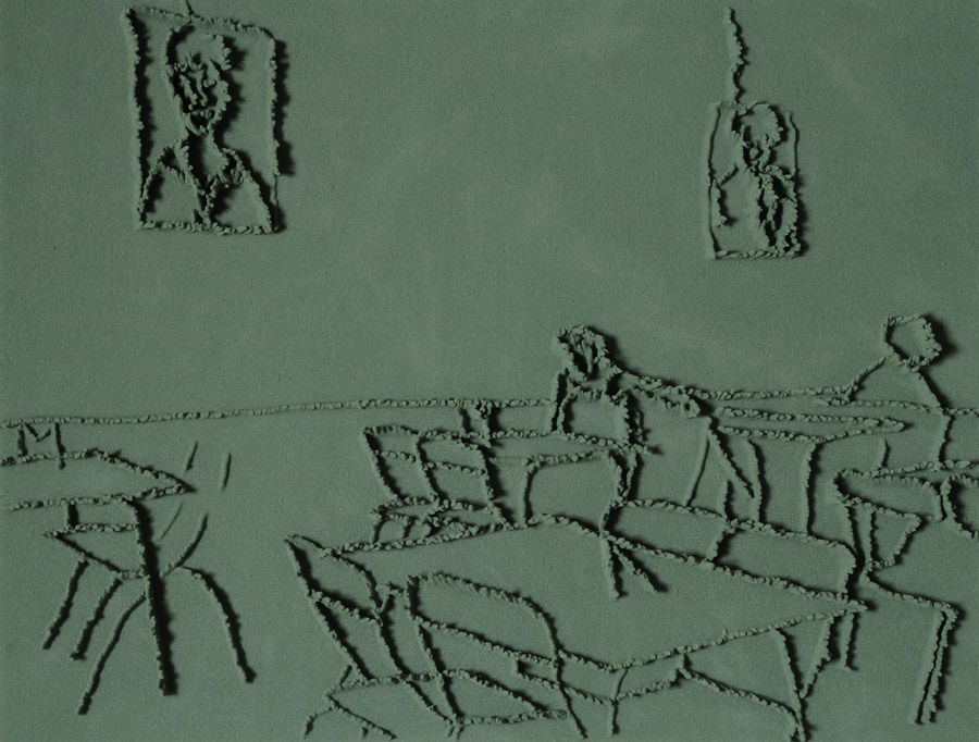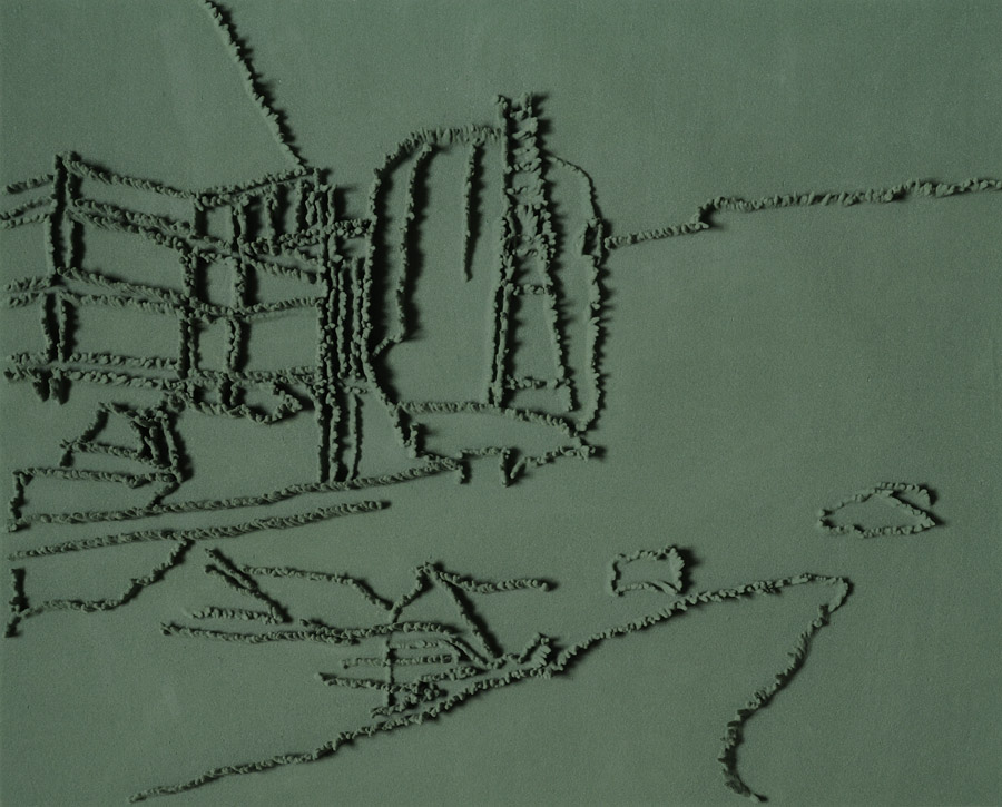 On floor: Skizzes, 2009. Series of 203 “Skizzes”,